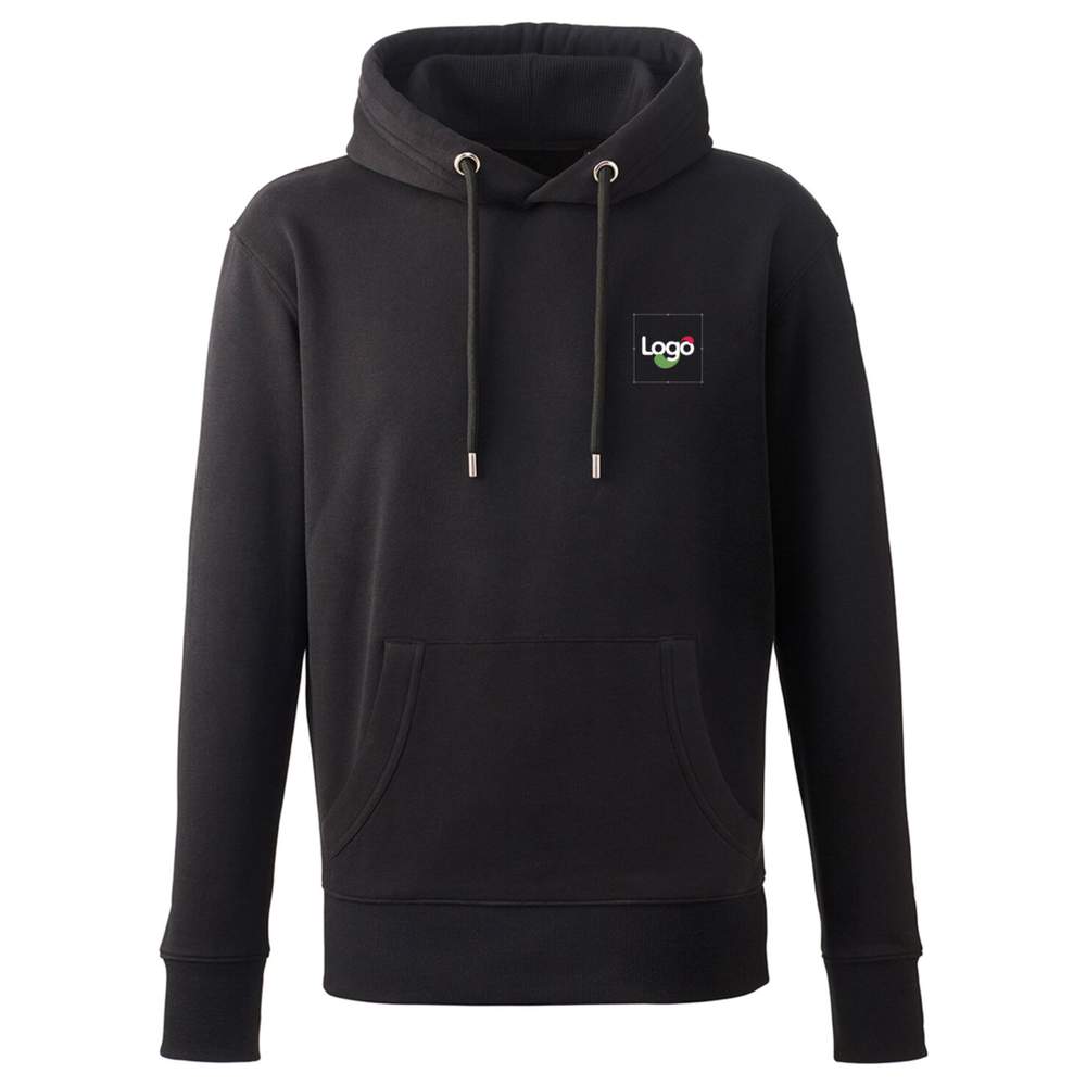 Sweatshirt til mænd ANTHEM, fremstillet af blødt hudfodt stof. Dette sweatshirt har en hætte i ribbet strik med justerbart snor og et indre lavet af fleece for optimal komfort. Dobbeltnålssømning giver en holdbar kvalitet. Det er udstyret med køllede ærmer og en praktisk kanguro-lomme. Størrelsesetiketten matcher sweatshirts farven. Sammensætningen er 80% økologisk bomuld, 20% genbrugspolyester for ensfarvede farver; 73% økologisk bomuld, 21% genbrugspolyester, 6% viskose til grå marmoreret; og 78% økologisk bomuld, 21% genbrugspolyester, 1% viskose for grå aske. Dette sweatshirt med kappe er personaliserbart, hvilket giver mulighed for at tilføje dit logo eller visuelle elementer ved broderi.