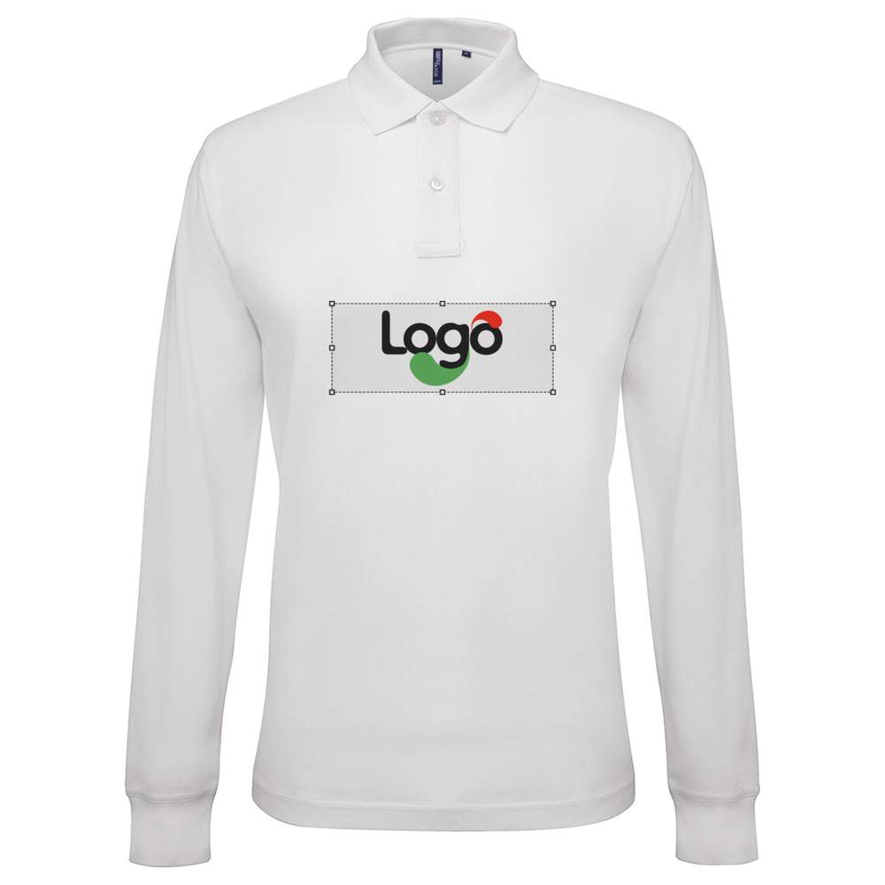 AQ030 - Polo klassisk skæring med lange ærmer til mænd aq030 personificeret - white