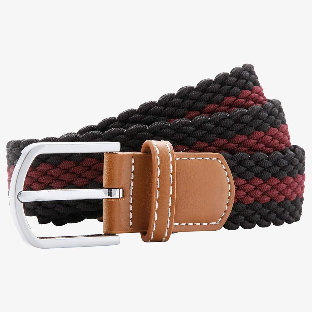 AQ901 - Stretch bælte med tofarvede striber - black/burgundy