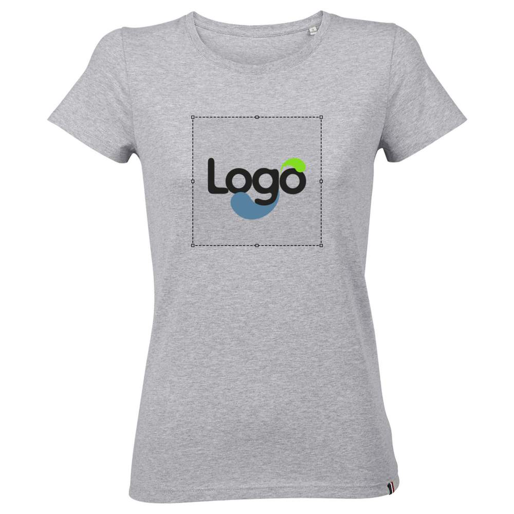 Dette tee-shirt til kvinder er fremstillet i Frankrig af kvalitetsbomuld. Det har et justeret snit, en rund hals og korte ærmer. Renhedsstrimmel omkring halsen og forstærkede sømme garanterer langvarig komfort. Denne model er ideel til personliggørelse med dit logo, et visuelt element eller en besked efter eget valg. Det er perfekt til begivenheder, promotioner eller blot til at vise din visuelle identitet.