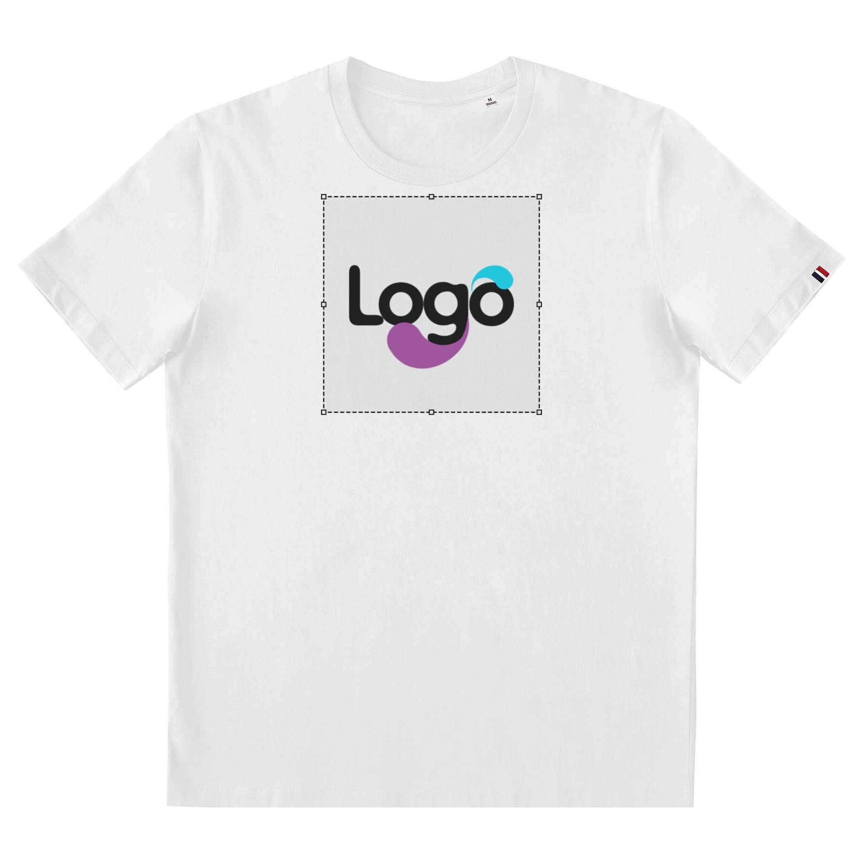 Enkønnet tee shirt fremstillet i Frankrig. Rund hals med rensningsband. Behageligt snit. Model skåret og syet. Tricolor detalje nederst på kroppen. Dette t-shirt er ideelt til at udtrykke din individualitet og kan tilpasses efter dine ønske.