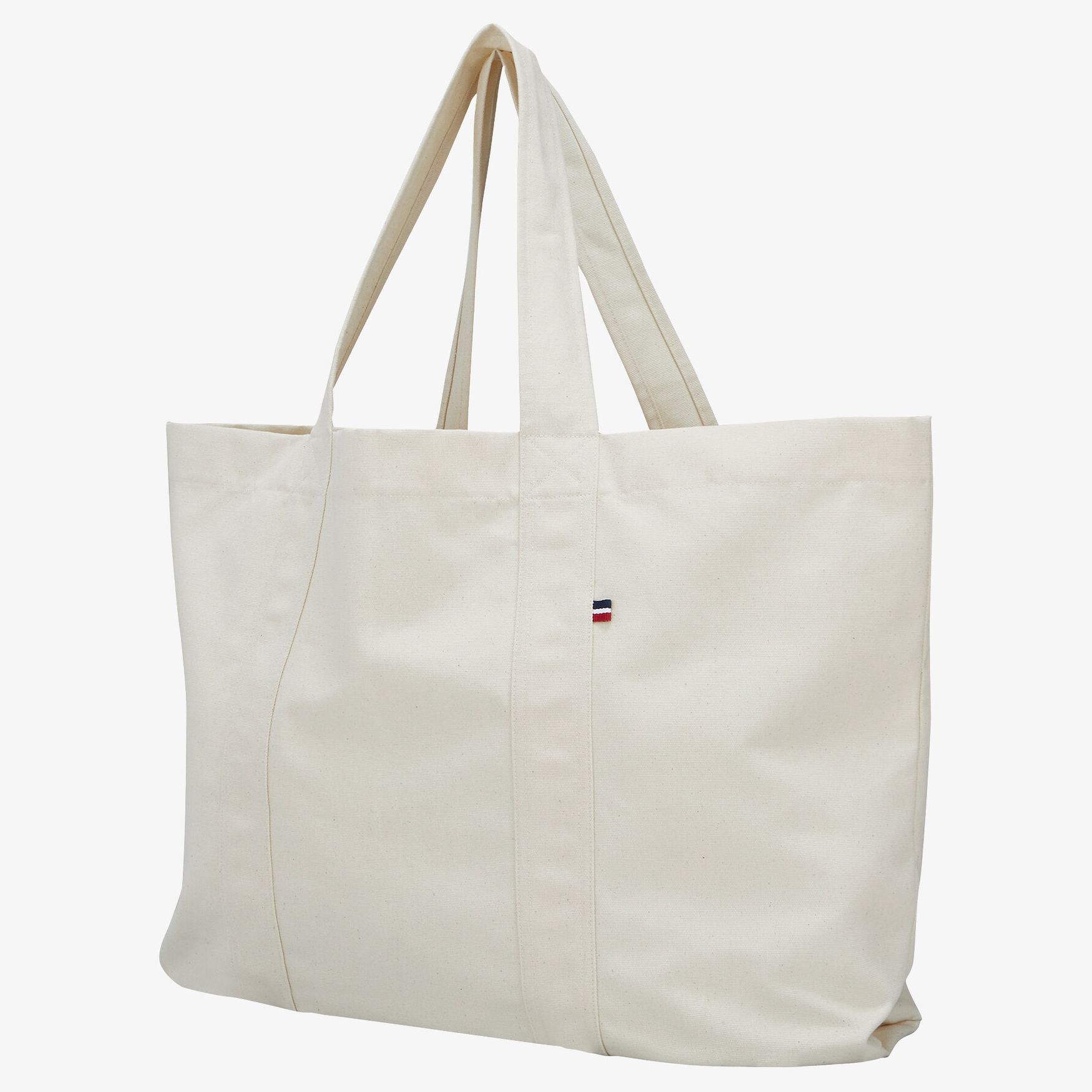 Forstærket XL taske, designet til daglig brug. Den tilbyder et betydeligt volumen til transport af forskellige genstande. Håndtagene er påklæbet og dobbeltlagede for større holdbarhed. Afstanden mellem håndtagene gør det nemt at personificere. En påklæbet indre lomme med grovkornsetikett angiver produktionssteder. Tricolore galon fastgjort på håndtaget. Sanforiseret stof for øget dimensionel stabilitet.