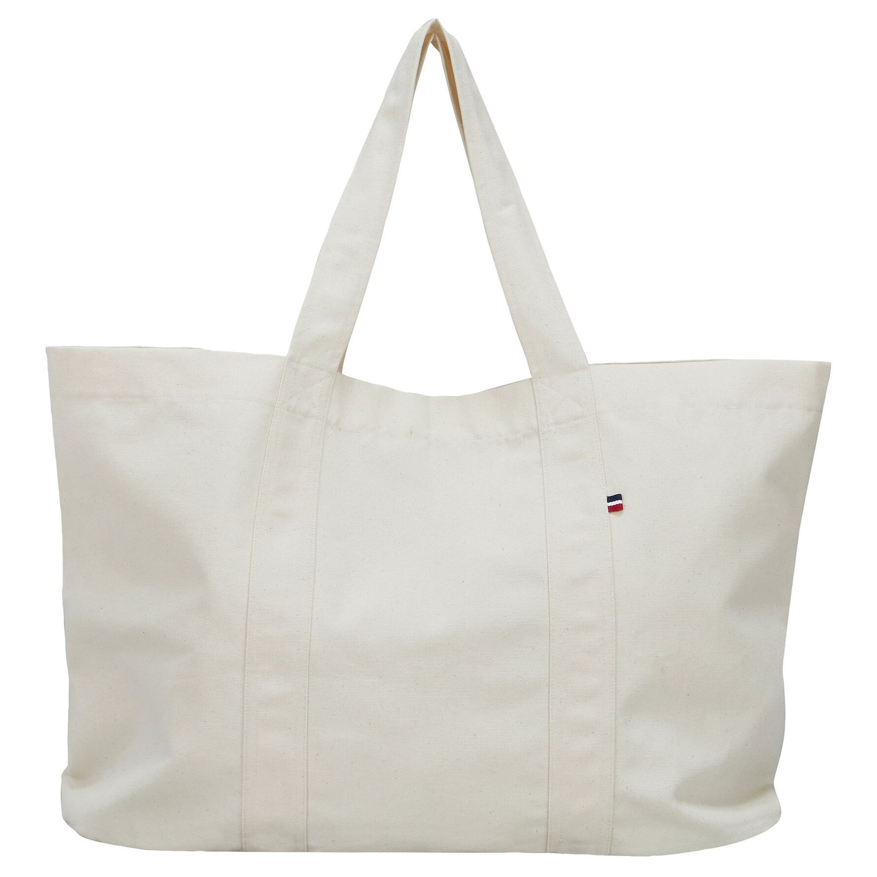 Forstærket XL taske, designet til daglig brug. Den tilbyder et betydeligt volumen til transport af forskellige genstande. Håndtagene er påklæbet og dobbeltlagede for større holdbarhed. Afstanden mellem håndtagene gør det nemt at personificere. En påklæbet indre lomme med grovkornsetikett angiver produktionssteder. Tricolore galon fastgjort på håndtaget. Sanforiseret stof for øget dimensionel stabilitet.