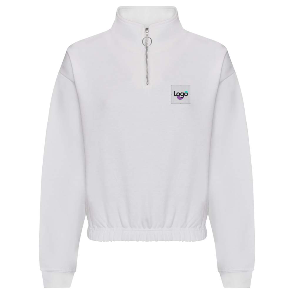 Women's cropped 1/4 zip sweat jh037 personaliserbar - Arctic white