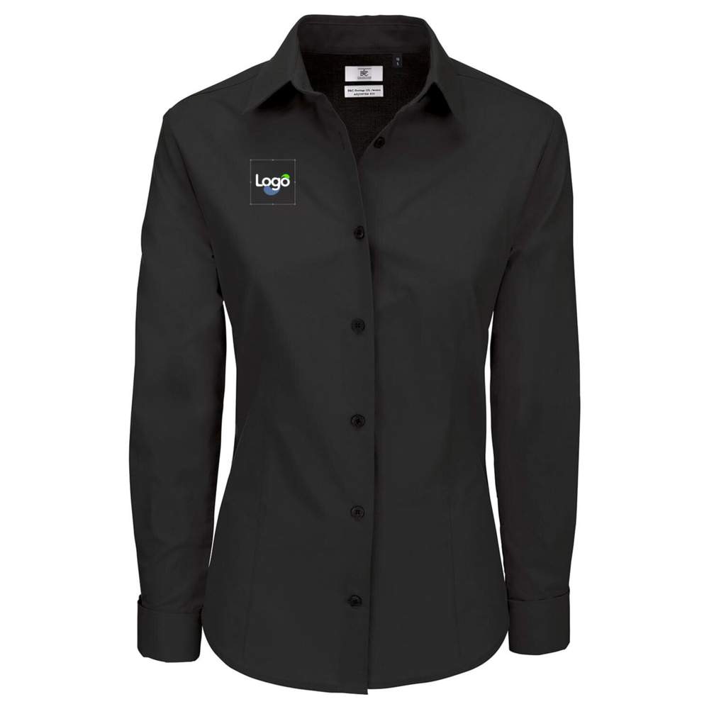 Heritage bluse kvinde i 100% kamgarn bomuld. Langærmet bluse i ren bomuldspoplin behandlet Easy Care. Kvindeligt krølle. Ermer med dobbelt knap og mulighed for mousquetaires. Perlende knapper syet i kors. Sidste knaphul nedadgående. Moderne og afrundet bundkant. 1 reserveknap. Indsnit på brystet, foran og bagpå til en tilpasset skæring. Mulighed for at tilpasse denne bluse ved broderi eller trykning af dit logo.