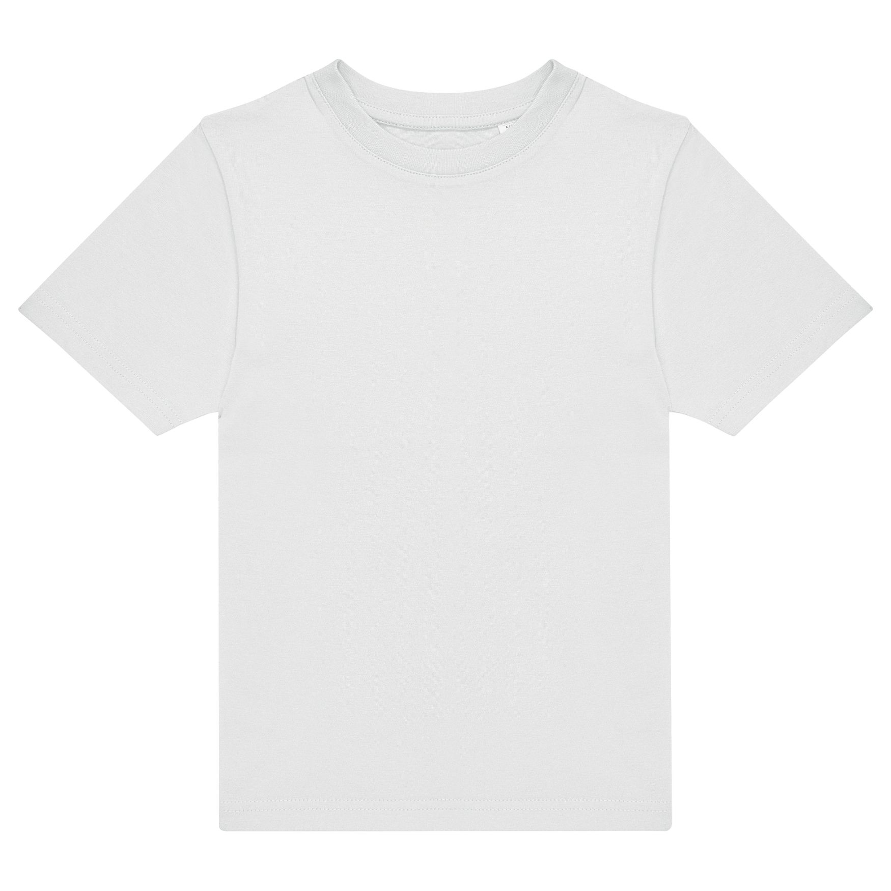 Kids #E150 tee-shirt er fremstillet i enkelt jersey med tubulær konstruktion, bortset fra størrelse 1-2 år, som har sidesømme. Den smalle halsudskæring er komplet med forstærket kravebånd. Tee-shirt er uden mærke.