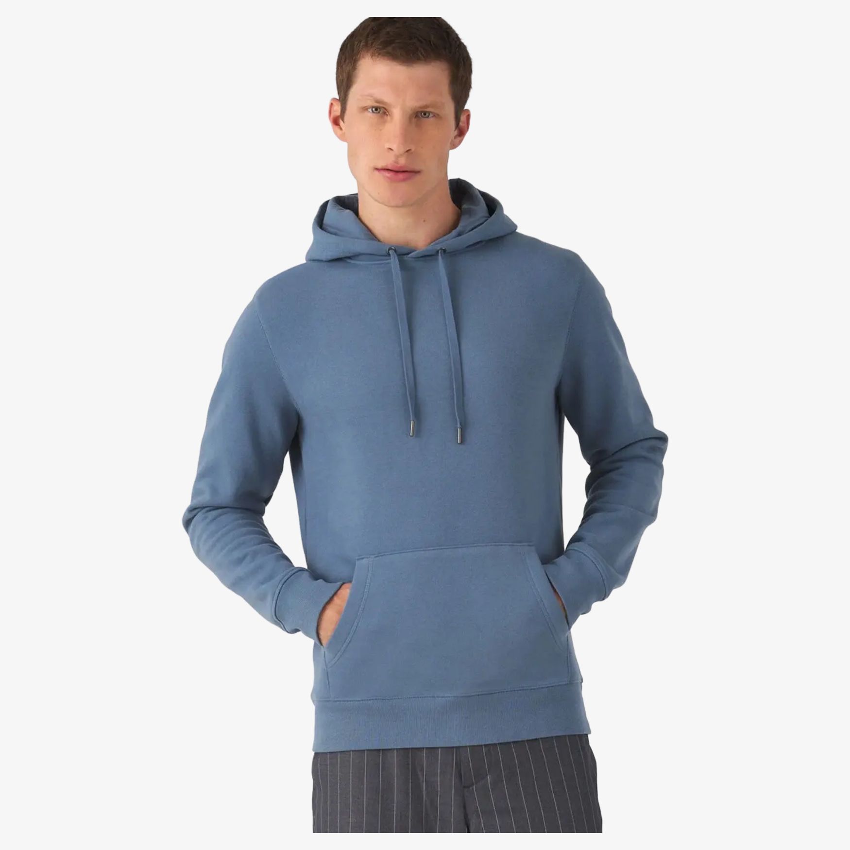 Trøje med hætte. Overflade 100% bomuld. Inderskrabning. Varighed og ekstrem komfort på grund af B&Cs PST-teknologi og dets kontinuerlige polyestertråd. Elegante, luksuriøse og komfortable trøje med hætte. Sidesømme. Hættedoblet i Single Jersey. Flade snøre med metalliske embuts. Halvmåne af Single Jersey bagpå. Bånd til rengøring omkring halsen.