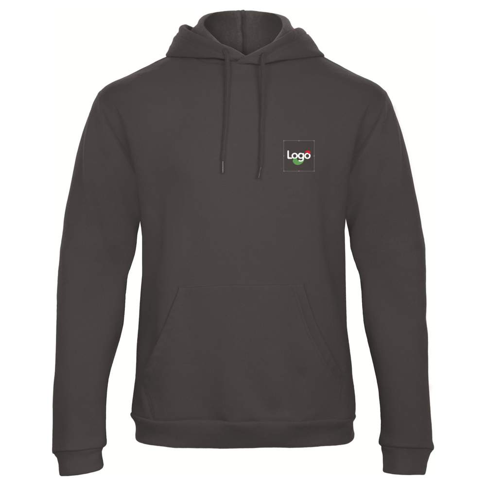 Sweatshirt med kappe fremstillet af bomuld polyester. Det har en nederkant og ærmeskant af elastisk 1x1 rib, dobbelt søm ved armehullerne, en kanguro-lomme og en kappe i samme farve. Dets monterede ærmer og sidesøm giver optimal komfort. Dette sweatshirt kan tilpasses med broderi eller ved tilføjelse af dit logo. Sammensætning: 50% bomuld / 50% polyester.