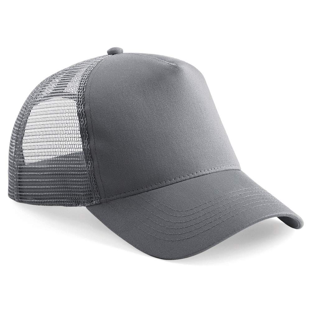 Casquette med 5 paneler med forkrøbet skygge. Én størrelse justerbart via plastik lås. Materialer: Foran og emblemet 100% bomuld, net 100% polyester.