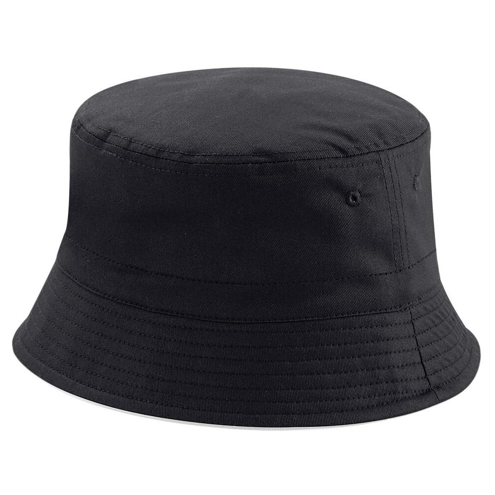 Bob med helt reversibel stil, fladt top, broderede ventilationshuller og kort kant.