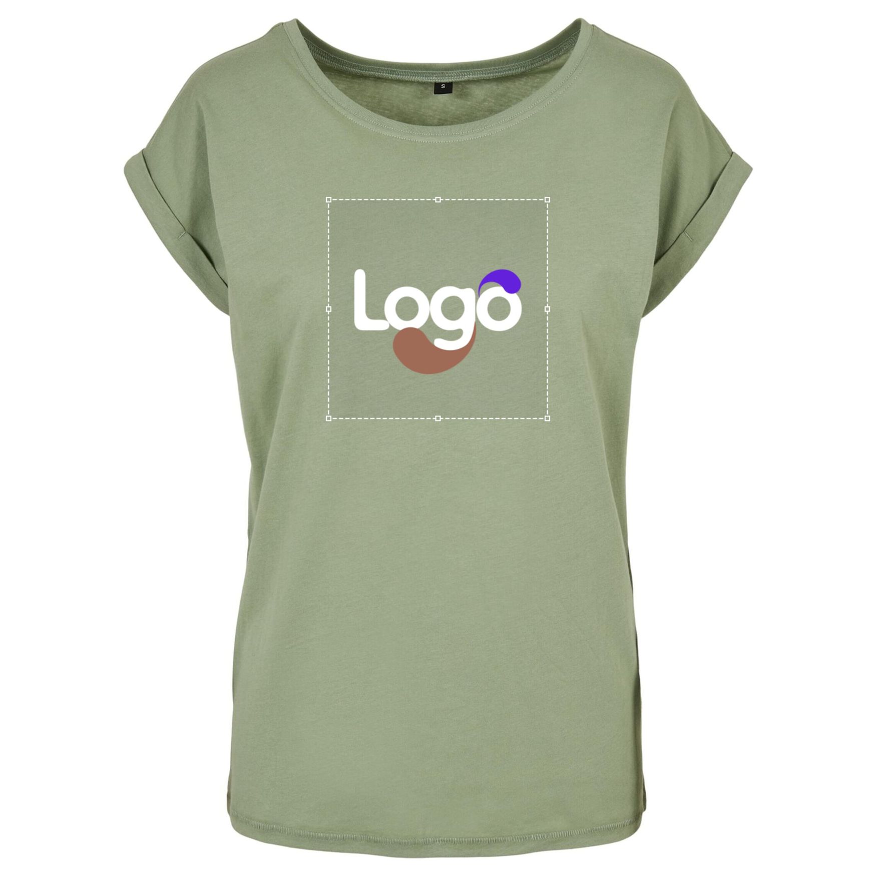 Ladies extended shoulder tee Tee shirt bomuld viscose by021 personalisering - Soft salvia