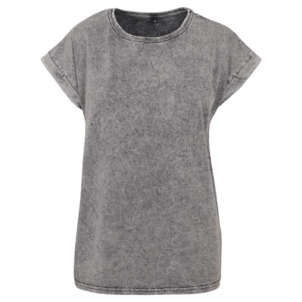 Ladies acid washed extended shoulder tee by053 personalisering - Grey black