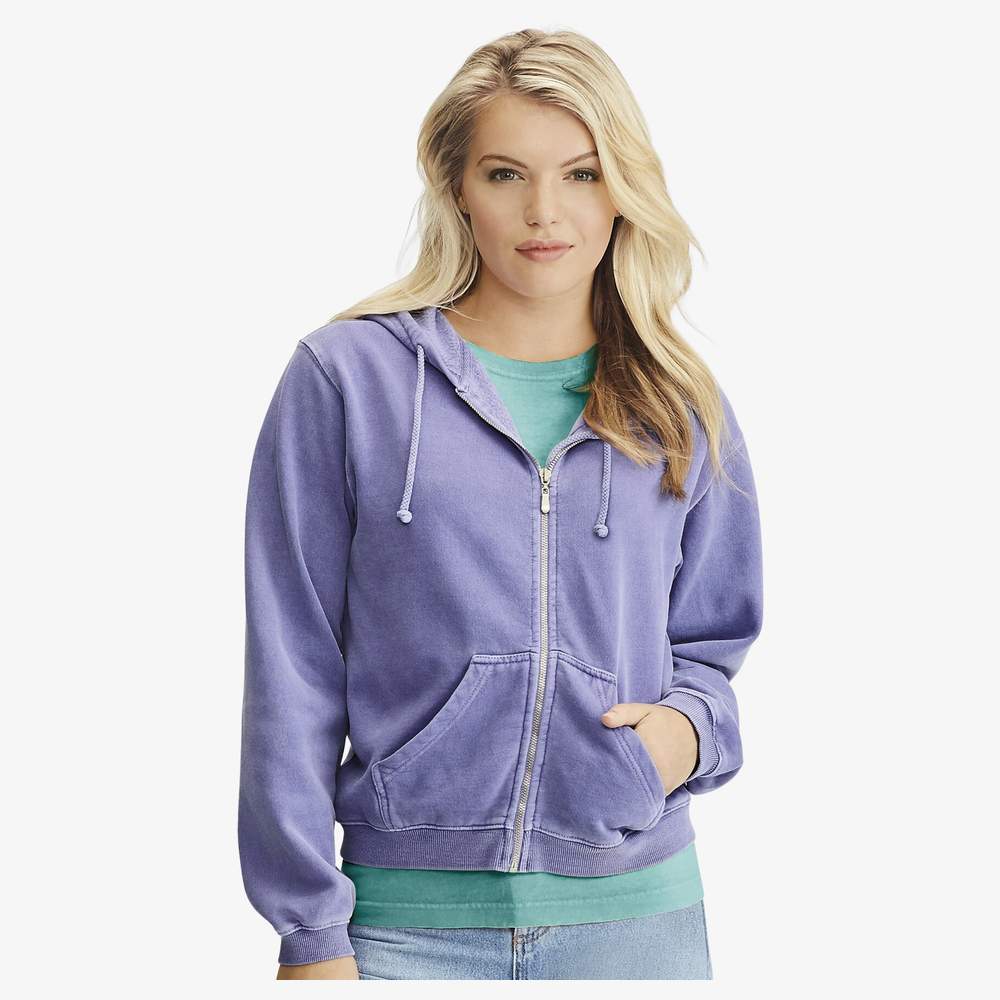 Ce sweat à capuche pour femme combine confort et fonctionnalité. Confectionné avec un mélange de coton et de polyester, il offre une sensation douce et agréable. Sa conception avec une fermeture éclair intégrale permet une facilité d'utilisation et un ajustement personnalisé. Les manches set-in et la poche appliquée ajoutent une touche pratique à ce vêtement. Le bord côte aux poignets et à la taille assure un maintien optimal. Composition 80% coton 20% polyester. Caractéristiques : Tissu teint et lavé. Manches : Set-in. Poches : Une poche appliquée. Bord côte : 1 x 1 aux poignets et à la taille