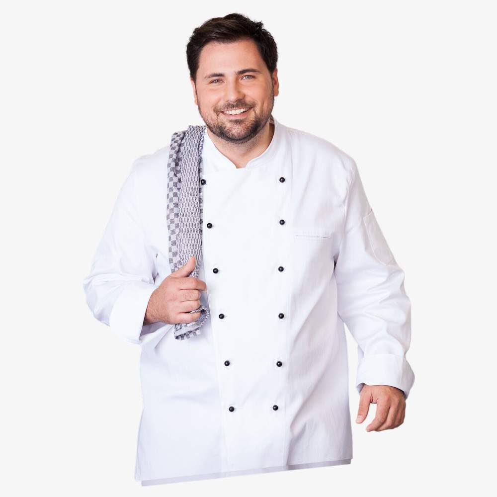 Denne kokkensjakke er designet til at opfylde kravene for professionelle i restaurationsbranchen. Den tilbyder optimal komfort takket være sin sammensætning af polyester og bomuld. De dobbeltdobrede ermer og den indre brystlomme med kantstrik er funktionelle detaljer. Nem at stryge, sikrer denne jakke en pæn præsentation i alle situationer. De sorte knapper med runde hoveder fuldender looket.
