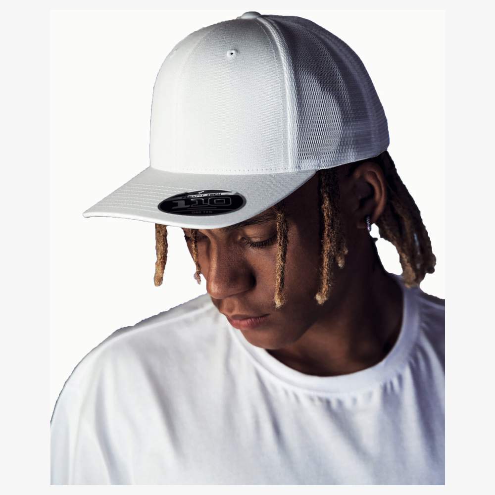 Trucker hat med tidløs design. For i bomuld og bag i polyestermesh. Justerbar med Flexfit teknologi og snapback lås. 8-strikseviste på visir og under visir i sølv farve. Visir forudformet og polstrede på 8 steder. Udvendig 1: 100% bomuld. Udvendig 2: 100% mesh i polyester. Mulighed for brodering for en unik og holdbar effekt.