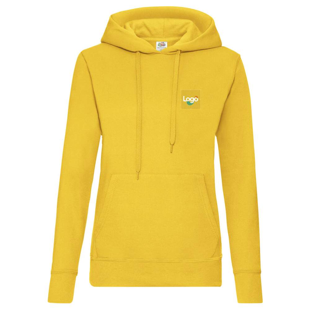 Denne klassiske trøje med kappe i lady fit er fremstillet af 80% bomuld Belcoro® og 20% polyester for optimal komfort. Den har sidesømme for en smigende pasform, en fordoblet kappe med ton-i-ton snor, og en praktisk lomme. Denne trøje er ideel til tilpasning i broderi, hvilket gør det muligt at tilføje dit logo eller dit visuelle element for effektiv kommunikation.