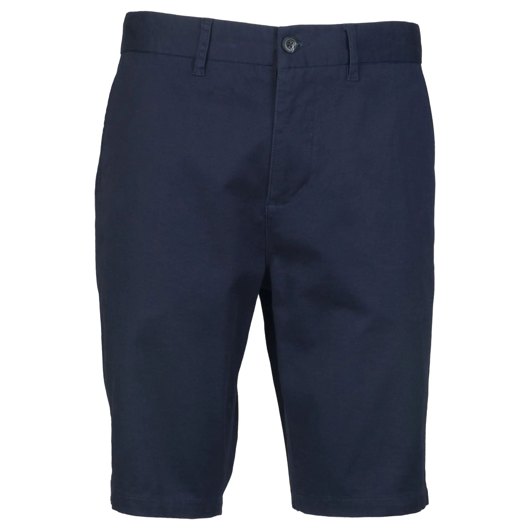 Stretch shorts til mænd uden læg designet til at give bevægelsesfrihed med et materiale bestående af 97 % bomuld og 3 % elastan. Den har to baglommer med piping og to skrå forlommer. Lukningen består af lynlås og knappet linning. Enkel kant, uden mærkeseddel.