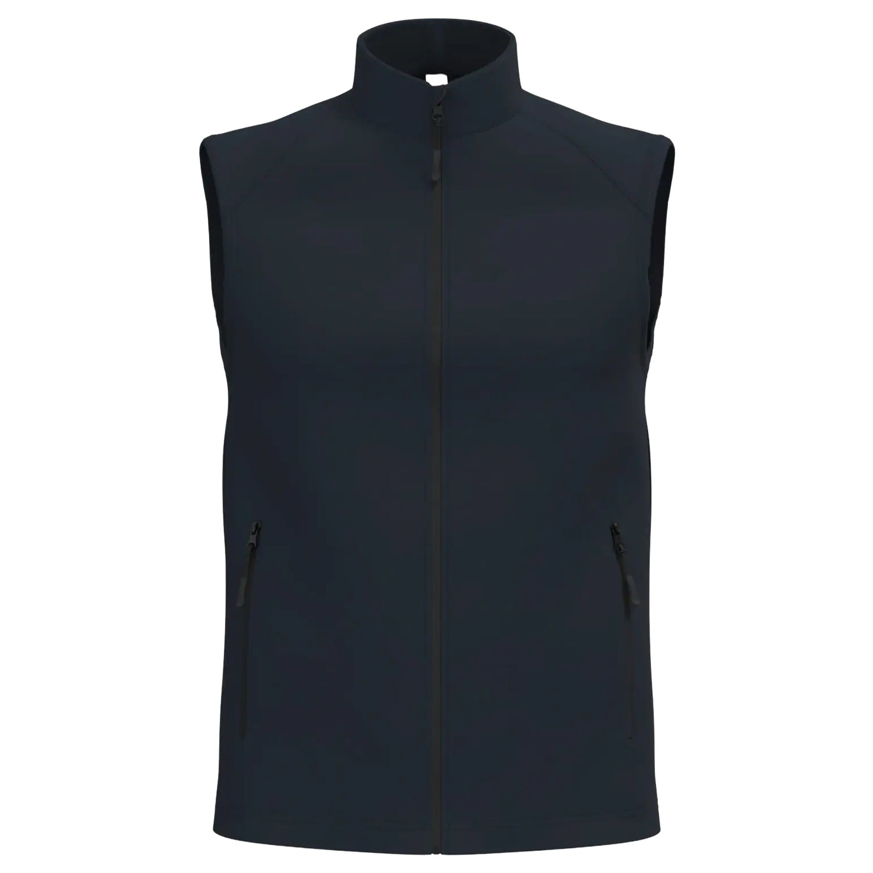 Bodywarmer softshell i 2 lag har et indre i sort mikropolar polyester og en lige pasform med høj krave. Den har to sidelommer foret med polytrikot med nylonlynlås og en nylonlynlås foran med hakbeskytter. Skulder- og rygstykker, indvendigt kravebånd og dobbelthemmets afslutning. Sammensætning 95 % polyester, 5 % elastan.