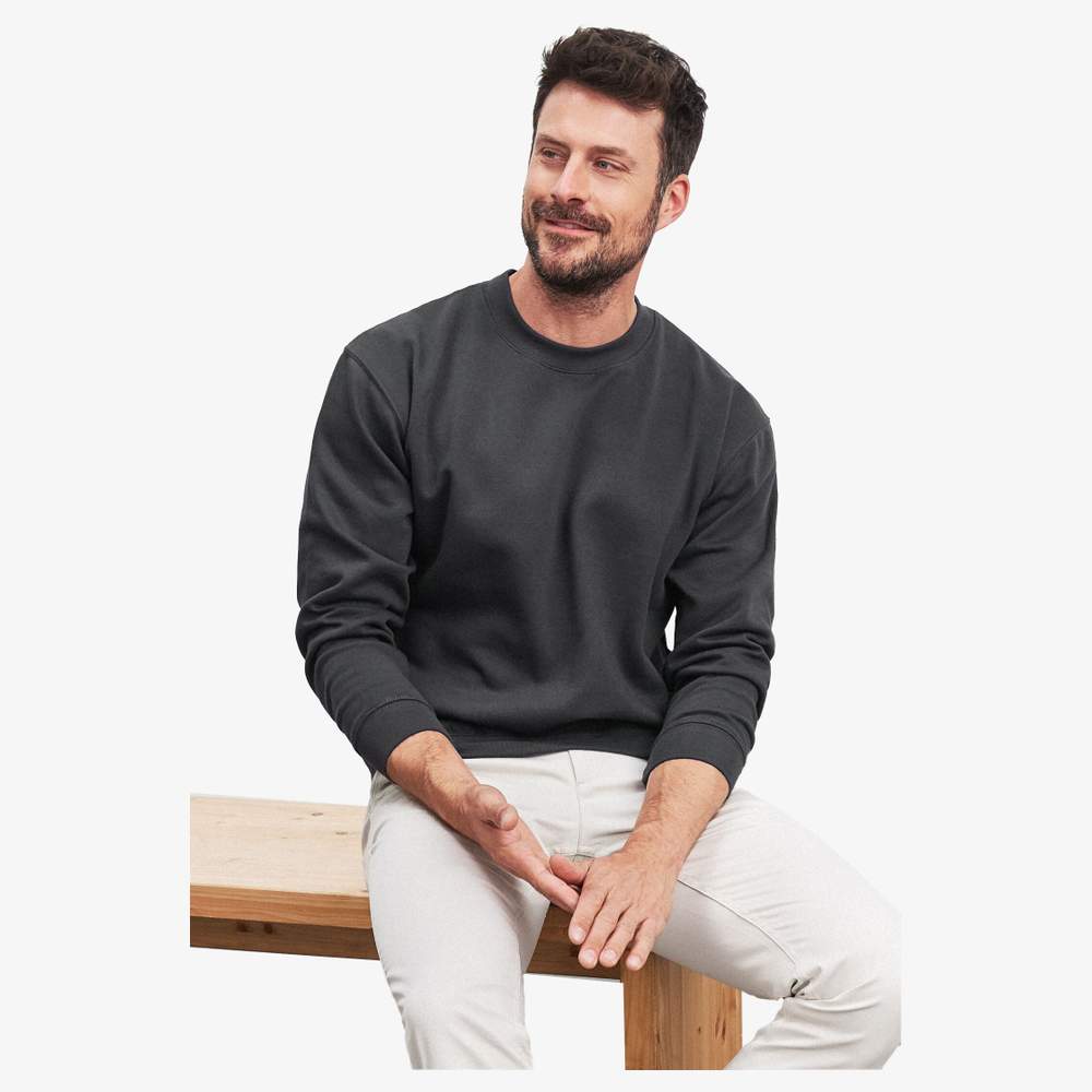 Dette sweatshirt tilbyder optimal komfort takket være dets sammensætning af ring-spun bomuld og polyester. Dets klassiske skære og flade sømme sikrer en god holdbarhed. Den runde hals og de bundkante med elastan giver en pæn afslutning. Den halvmandformede forstærkning i halsen forstærker holdbarheden. Dette tøj er designet til daglig brug og tilbyder et godt forhold mellem pris og kvalitet. Tæppet er skraberet inde. Bundkantene er med elastan.