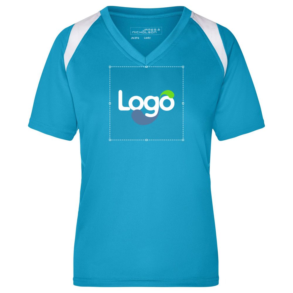 Dette løbet-shirt til damer er lavet af polyester for optimal komfort under dine sportsaktiviteter. Det tilbyder god fugtabsorption og hurtig tørring, så du kan forblive tør og komfortabel. Dens stramme skæring og V-hals giver fri bevægelse og et sporty look. Mulighed for personalisering til at vise dit logo eller dit visuelle element.