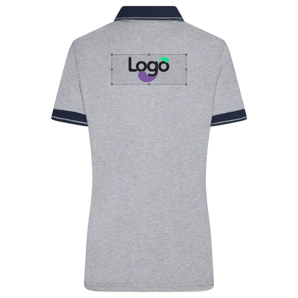 Polo til kvinder, lidt indsnøret, i en blanding af på mode materialer, i enkelt fint tricot. Afslappet pasform. Polo-krave og manchetter med kontraststriber. Har fem knapper. Sammensætning : 65% polyester, 35% bomuld. Denne polo er ideal til tilpasning ved broderi, hvilket gør det muligt at tilføje dit logo eller dine grafiske elementer.