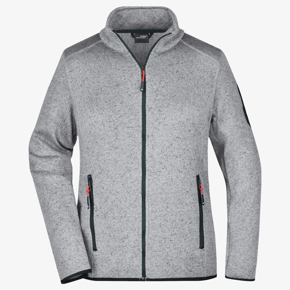 JN761 - Ladies knitted fleece jacket jn761 - light_grey_melange/red
