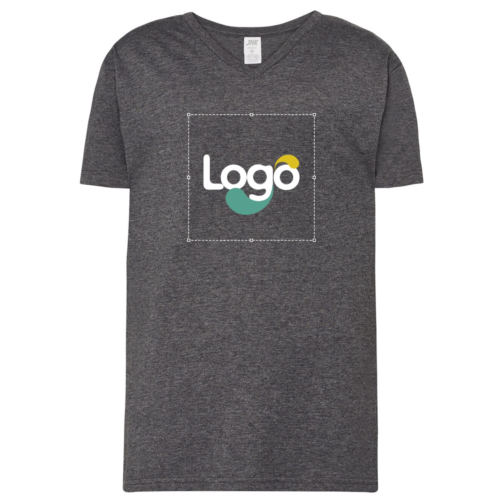 Mandst-shirt med V-hals i ring-spun bomuld, præ-krympet, der tilbyder optimal komfort og god vaskbarhed. Skulderbåndet fra skulder til skulder sikrer en pæn afslutning og bedre holdbarhed. Elastan halsen bevarer sin form, selv efter flere vask. Dette t-shirt er ideelt til personalisering, uanset om det er til arrangementer, promotioner eller at vise din visuelle identitet. Det er muligt at tilføje dit logo, et billede eller ethvert andet grafisk element efter eget valg.