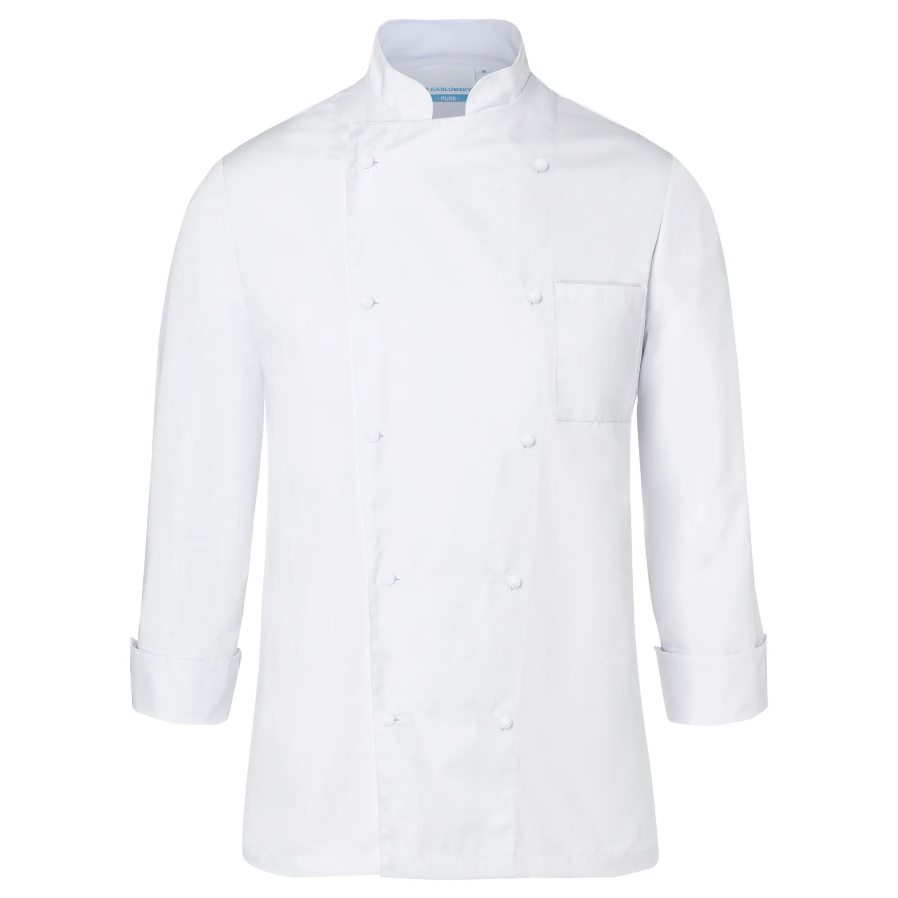 Unisex kokkejakken er lavet i 100 % bomuld. Den har en krydset krave og dobbeltradet knaplukning med 10 knapper. Ærmerne har åbninger for øget komfort. En brystlomme er placeret på venstre side.
