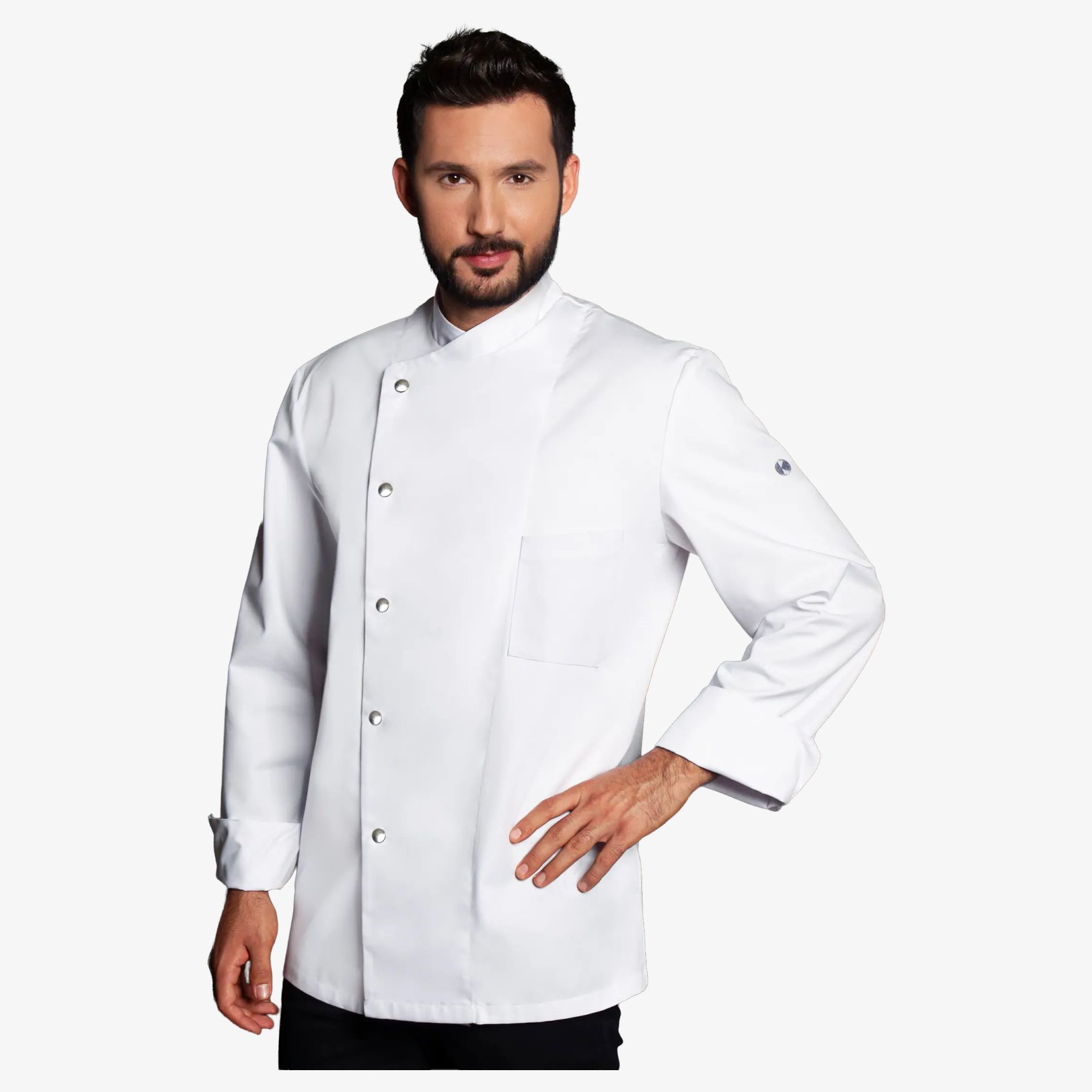 Denne køkkenjakke med lange ærmer er designet til at opfylde de professionelle krav i restaurantbranchen. Den kombinerer komfort, holdbarhed og funktion for daglig intensiv brug. Den regulære pasform sikrer optimal bevægelsesfrihed, mens de østrigske sømme bagpå tilbyder behageligt støtte. Jakken er udstyret med en række på 5 knapper med knaplåse til nem og sikker lukning. En brystlomme med afdeling til fjerpenne holder skrivetøjet til rådighed. Åbninger ved håndledene letter bevægelser og forbedrer ventilationen. Stoffet er modstandsdygtigt over for vask og nemt at vedligeholde, hvilket sikrer en lang levetid.