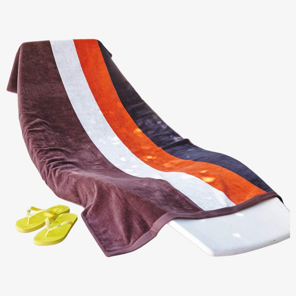 Dette strimmel jacquard strandtørklæde er designet til at give komfort og funktionalitet under dine øjeblikke med afslapning på stranden eller i svømmebassenget. Fremstillet af 100% bomuldsvelour, giver det en blød og behagelig følelse på huden, mens det sikrer god absorption af fugt. Dets størrelse på 90 x 180 cm gør det til en praktisk og komfortabel tilbehør til at ligge eller tørre sig.