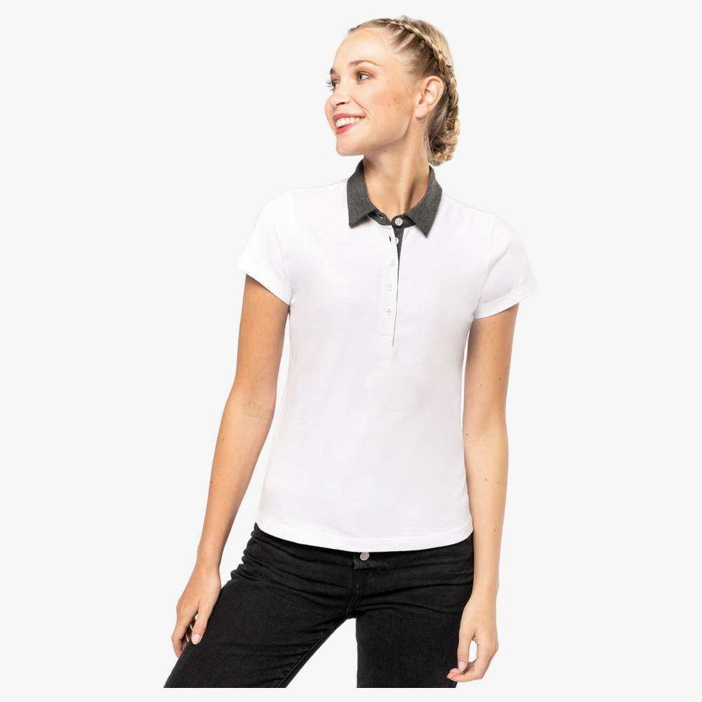 K261 - To-delt farve polo jersey kvinde k261 - white/dark_grey_heather
