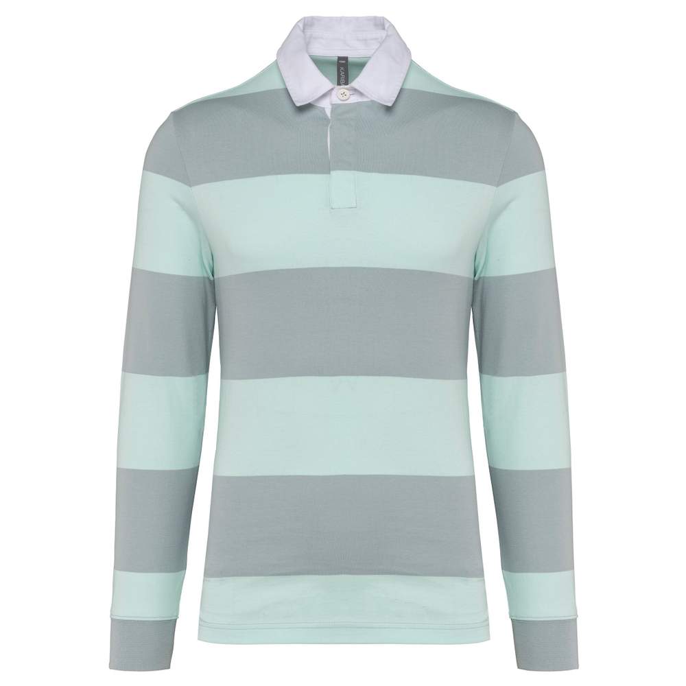 Strøget Polo med lange ærmer unisex k285 - Light grey ice mint stripes