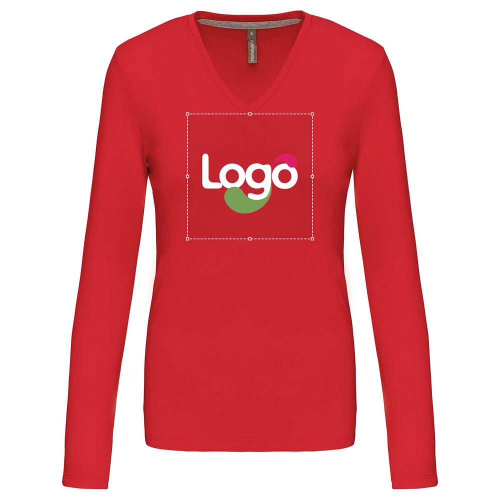 T-shirt V-hals lange ærmer kvinde k382 tilpasning - Red