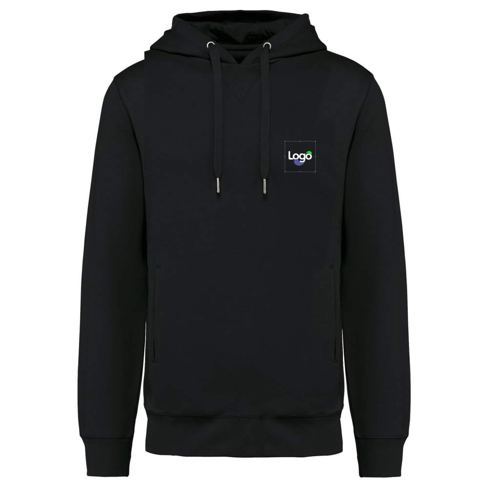 Sweat-shirt med kappe økologisk unisex. Tæt passende skæring. 2 kantstikede lommer foran. Kantstikning på ærmestykke, nederdel og kappekant. Kappe med trækstrik ton i ton med metalendestykker. Halvmåneforstærkning på bagsiden af halsen til nem tilpasning af mærket inde i tøjet. Indvendig chevronrensestrimmel på kraven og V-formet finish på halsen. Ingen mærketiket på kraven, kun en størrelseschip til nem tilpasning. Certificeret STANDARD 100 by OEKO-TEX® Nr. CQ 1007/8, IFTH. Sammensætning: 80% økologisk bomuld, 20% genbrugspolyester post-consumer (Undtagen farve Oxford Grey 75% økologisk bomuld, 25% genbrugspolyester post-consumer). Molleton ikke-børstet French Terry LST (Low Shrinkage Terry). Stof: Enzymvasket.