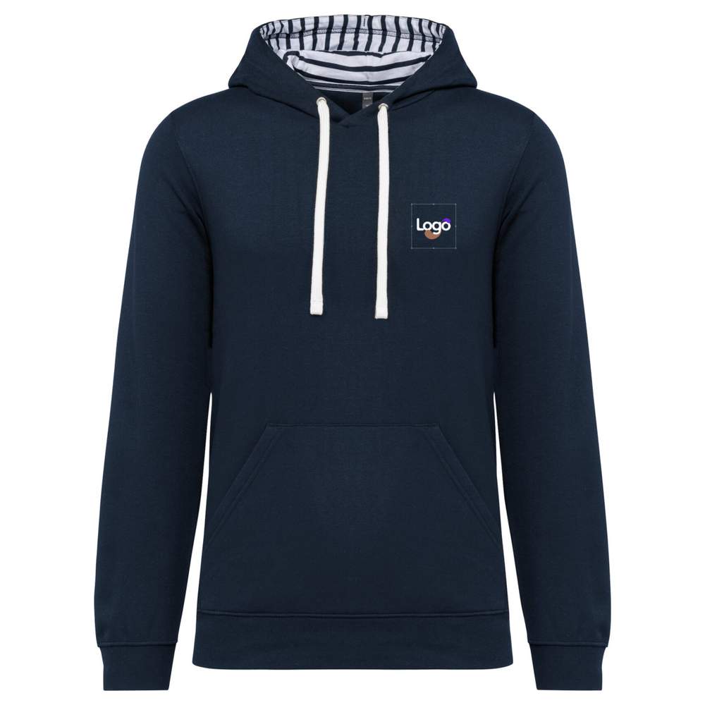 Trøje med capuchon i kontrast med ensfarvede mønstre, unisex , personliggørelse k4013 - Navy mariniere