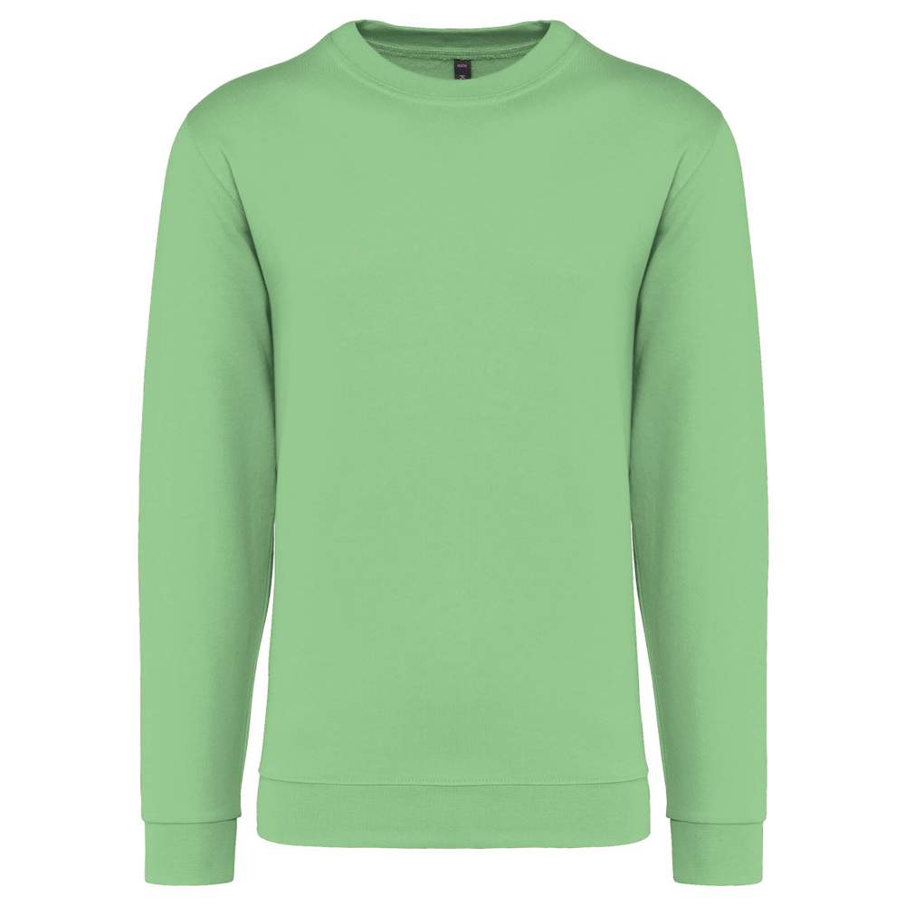 Trøje med rund hals i bomuldspolyester fleece. Tubulær skæring for optimal komfort. Bord-côte finish på hals, manchetter og nederdel. Denne trøje giver daglig komfort takket være sin sammensætning af bomuld og polyester.