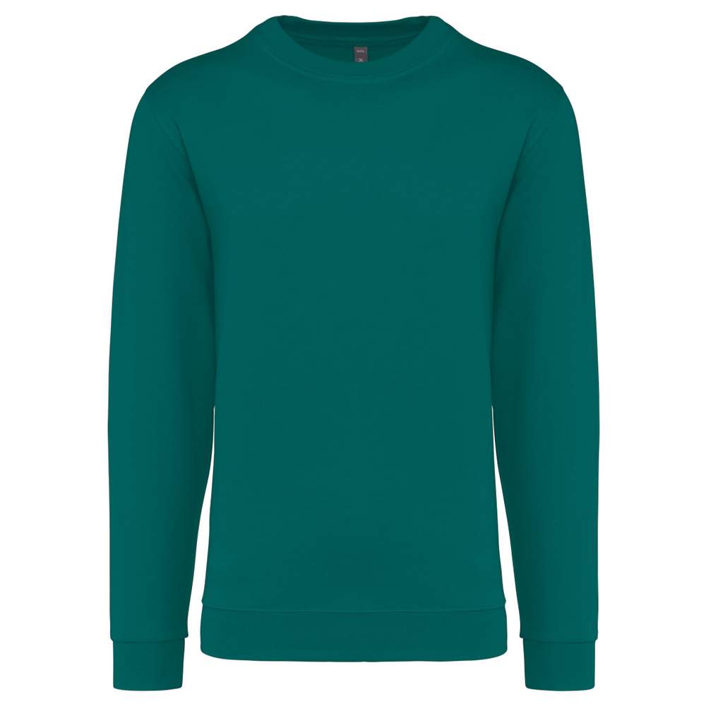 Trøje med rund hals i bomuldspolyester fleece. Tubulær skæring for optimal komfort. Bord-côte finish på hals, manchetter og nederdel. Denne trøje giver daglig komfort takket være sin sammensætning af bomuld og polyester.