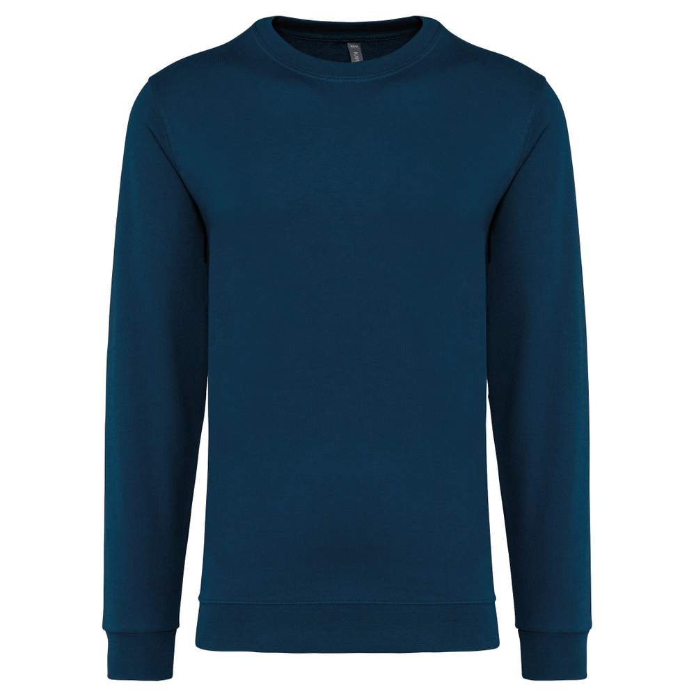 Trøje med rund hals i bomuldspolyester fleece. Tubulær skæring for optimal komfort. Bord-côte finish på hals, manchetter og nederdel. Denne trøje giver daglig komfort takket være sin sammensætning af bomuld og polyester.