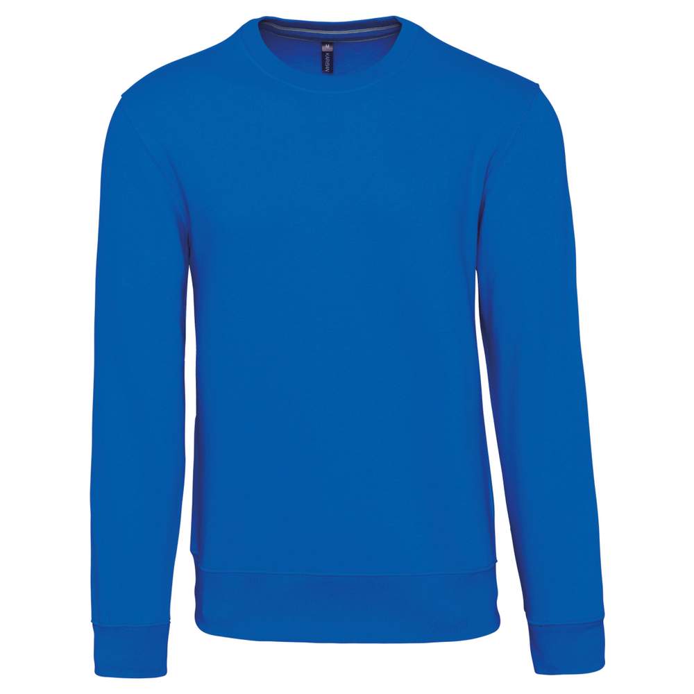 Trøje med rundhals i bomuld polyester fleece. Dette tøj tilbyder optimal komfort takket være sin sammensætning på 80% bomuld og 20% polyester. Den har en LSF (Low Shrinkage Fleece)-behandling, der begrænser krympningen efter vask. Fleecematerialet er børstet med tre tråde i kæmmet bomuld for øget blødhed. De monterede ærmer og kontrasterende renseliste rundt om halsen tilføjer en stilfuld detalje. Håndledderne og bundkanten på tøjet er afsluttet med en kantstrikning for behagelig pasform.