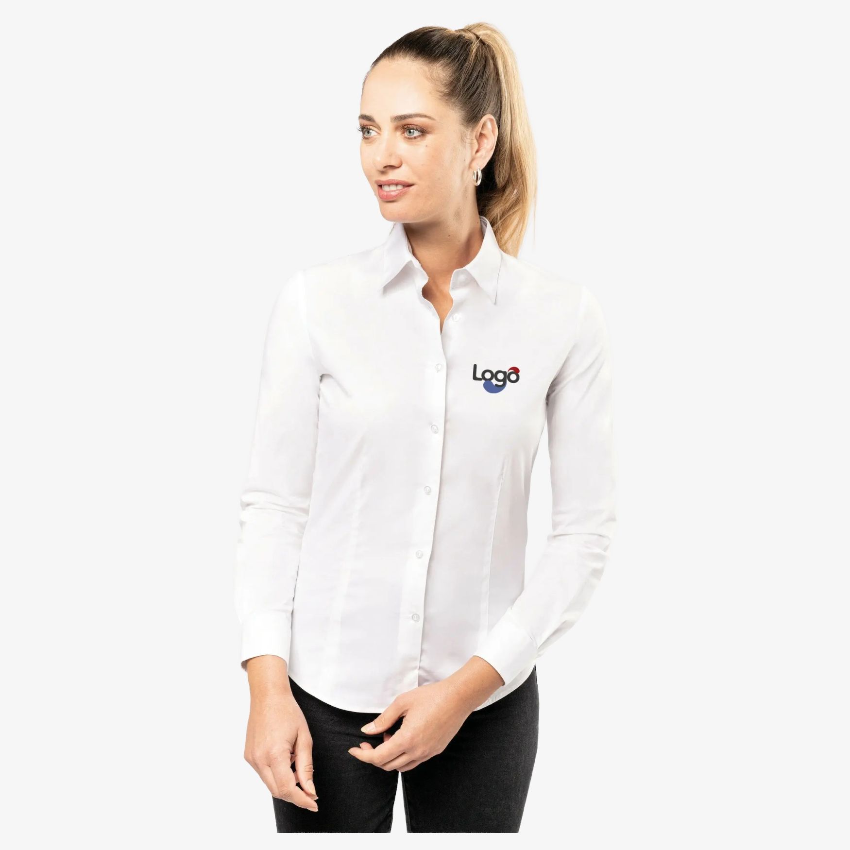 Denne bluse er ideel til et professionelt eller afslappet udseende, og kan personliggøres med broderi for at vise dit logo eller din visuelle identitet.