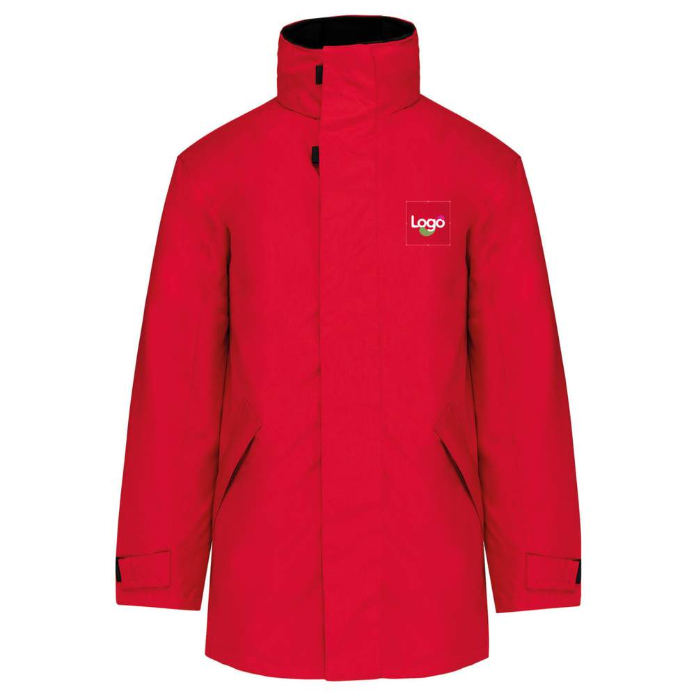 Parka fordoblet i Oxford polyester, der tilbyder komfort og beskyttelse. Glidelås med velcroflap og skjulte knapper. Den har to ydre glidelåsser, to indre lommer og en lomme til mobiltelefonen. En indbygget kappe på kragen og en polardoblet krave tilbyder ekstra beskyttelse. Et indvendigt glidelås tillader nem tilpasning ved broderi eller tryk af dit logo.