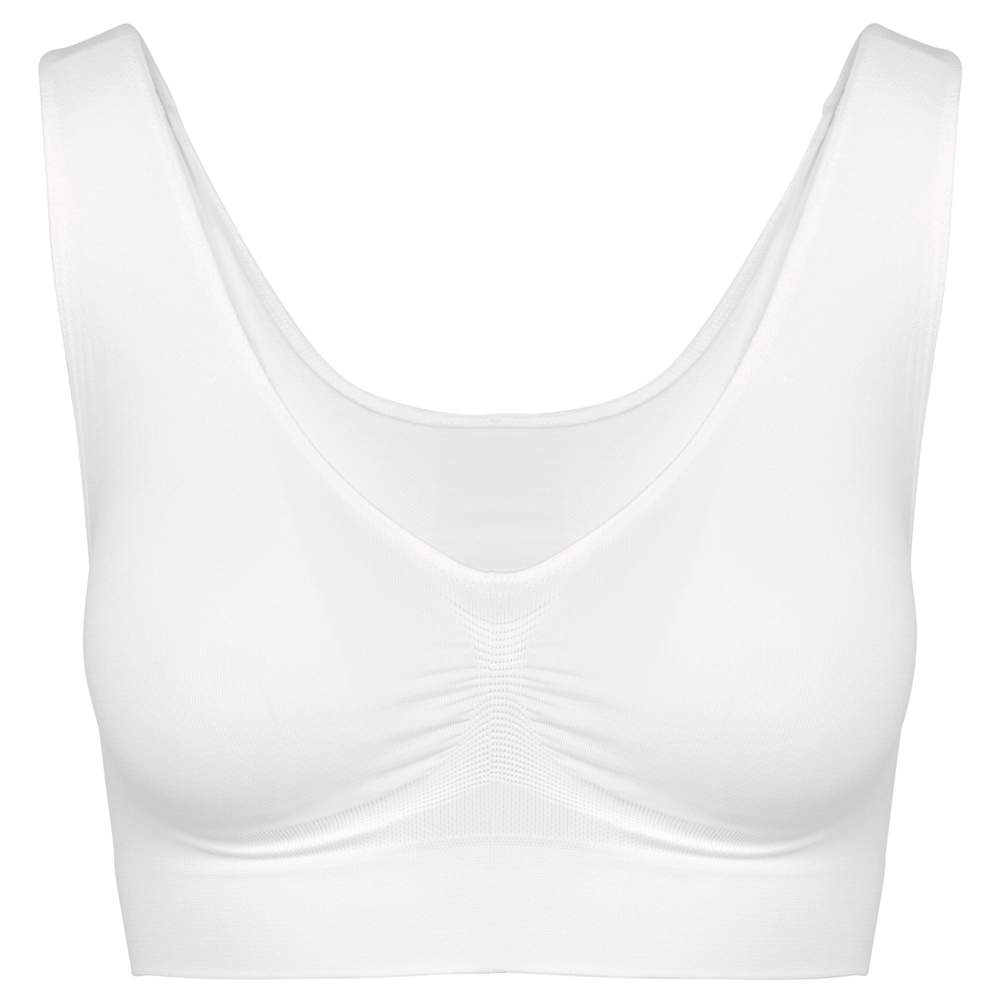 Bæredygtig bh uden sømmer med push-up-effekt. Formende skæring. Brede stropper. Form og ergonomisk strik for optimal støtte og komfort. Strækmærkeformende bh-bund med usynlig søm. Mærkeetiket Tear Away. Udviklet med 51% genbrugt polyamid før forbruget. Q-NOVA®-tråd. Jerseystof.