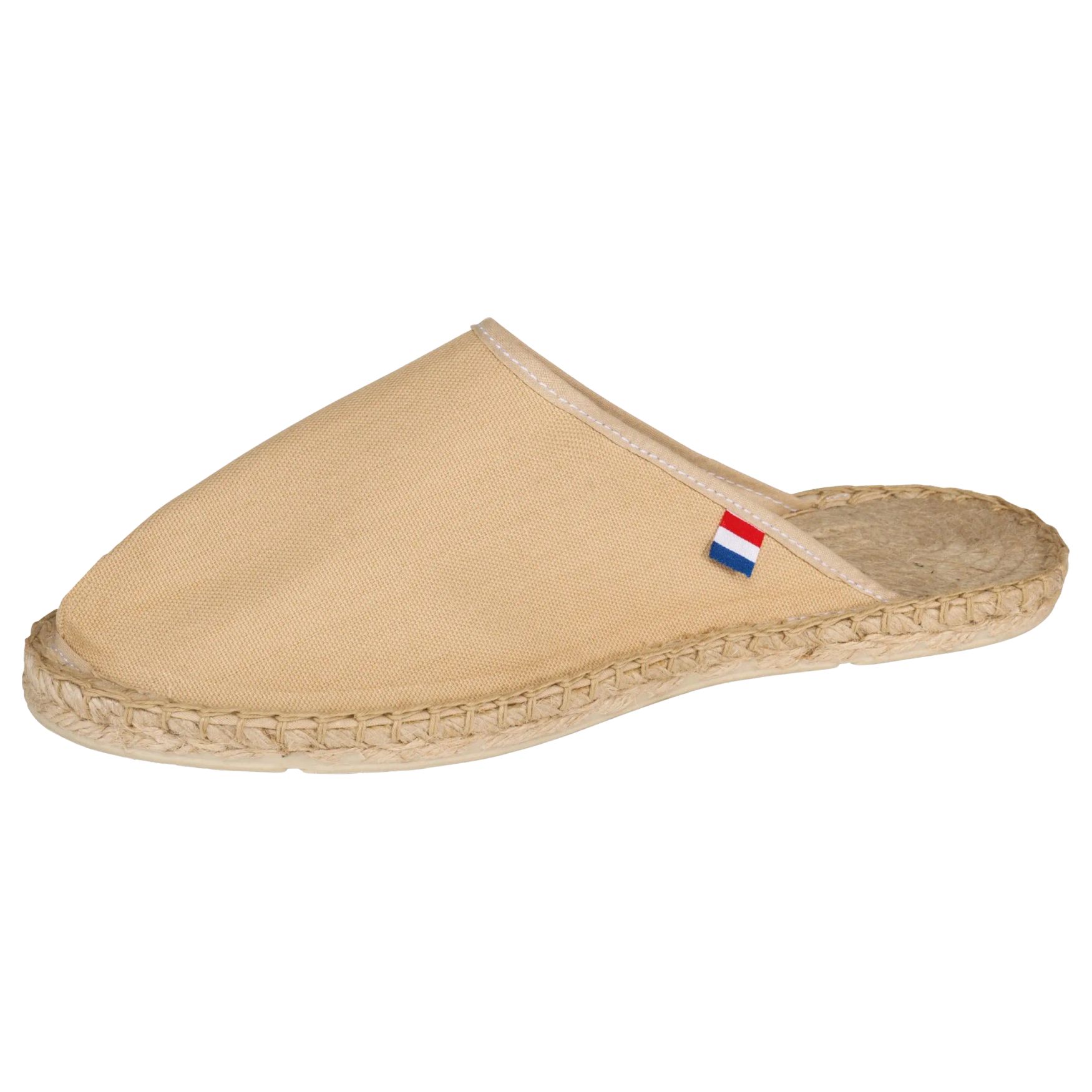 Mules Espadrilles flip-flop-sandal egnet til daglig brug indendørs eller udendørs. 100% bomuldslærred, sål i vulkaniseret gummi og jute, med kantbåndsfinish. Fremstillet i Frankrig.