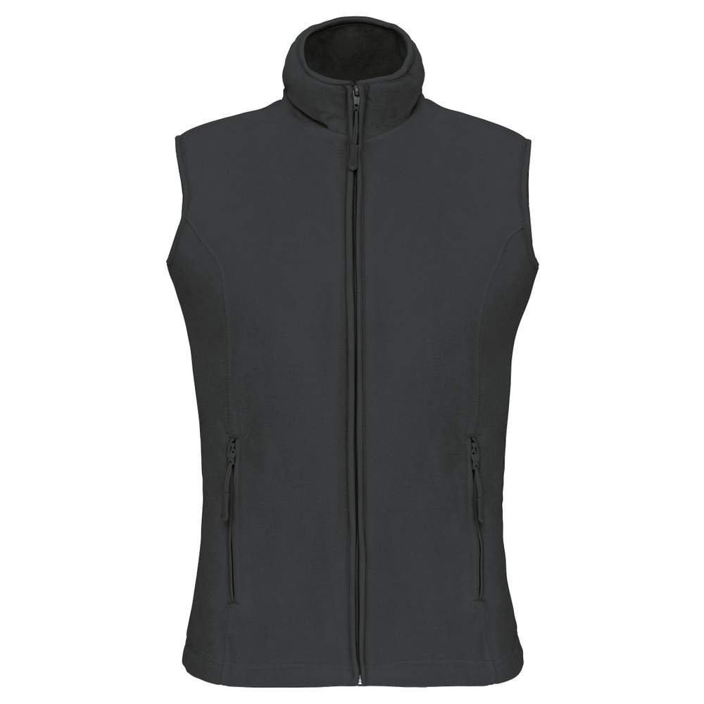 Denne mikro fleece jakke til kvinder giver optimal komfort takket være dens sammensætning af 100% polyester. Dens indsnævret skær vil fremhæve din silhuet, mens zipperen sikrer nem og hurtig lukning. De to zippelommer gør det muligt at opbevare dine personlige ejendele sikkert.