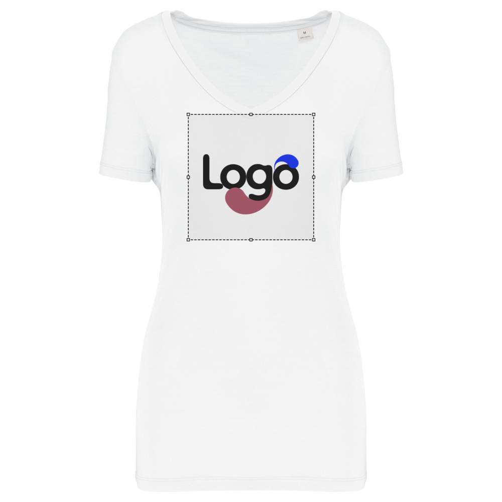 V-krage T-shirt med korte ærmer til kvinder, fremstillet af lyocell tencel™. Ret skåret for optimal komfort. Side sømme for bedre pasform. Enzymvasket for øget blødhed. V-krage i hovedmateriale for visuel harmoni. Indvendig renhedsstripe i hovedmateriale for ekstra komfort. Dobbeltrådsbund på ærmer og nederdel for en pæn finish. Mulighed for tilpasning til at vise dit logo eller dit visuelle.