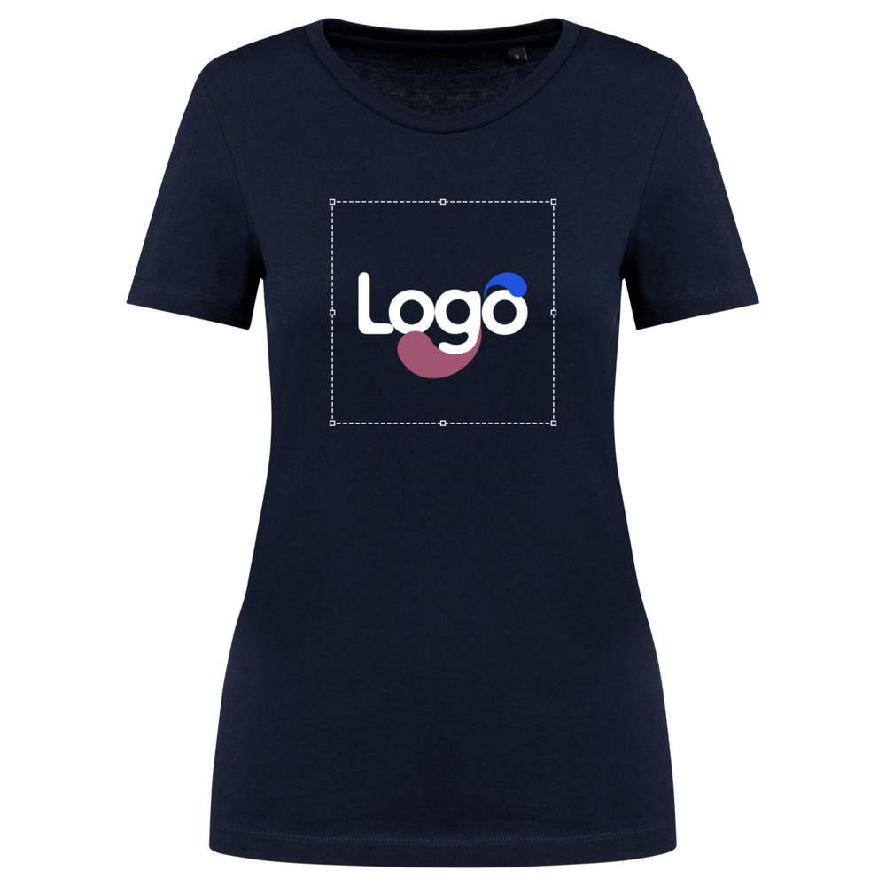 Kortærmet T-shirt til kvinder, fremstillet af kammet Supima® bomuldstråd. Dette jerseystof tilbyder stor finhed og en blød og silkeagtig berøring. Dens skåret og syet konstruktion sikrer øget holdbarhed. Den runde halsåbning er udstyret med en ton-i-ton renslighedsstripe. Forstærkning af skulderens søm med et silikonebånd tilbyder optimal komfort. Bunden af ærmerne og nederste del af tøjet er udført med en dobbelt søm. Dette t-shirt indeholder ikke en mærkeetiket på halsen, men en størrelseskippe for større diskretion. Dens sammensætning på 100% bomuld garanterer optimal komfort og god holdbarhed. Denne model er ideel til personliggørelse efter dine behov og ønsker.