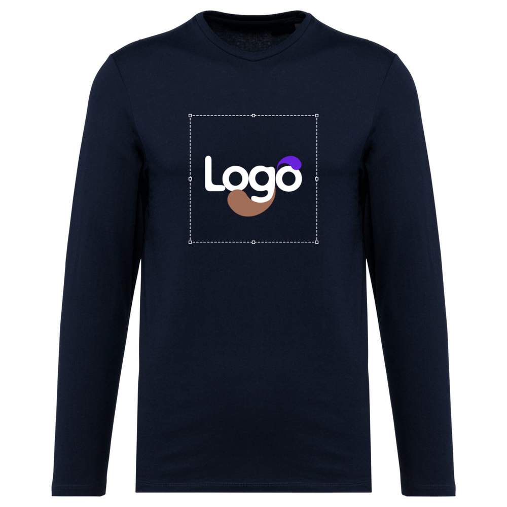 T-shirt med lange ærmer til mænd. Garn i kammet Supima®-bomuld. Fint og kvalitetsfuldt jerseystof med en blød og silkeagtig håndgreb. Klippet og syet konstruktion. Rund hals med rensestrimmel i samme farve. Forstærket skulderstreng med en silikonebånd. Afslutning af ærmernes bund og bund af tøjet med dobbelt søm. Ingen mærkeetiket på halsen, kun en størrelseschip. Dette t-shirt tilbyder en fremragende basis for udtrykket af din visuelle identitet. Det er muligt at tilpasse det med dit logo, dit visuelle element eller ethvert andet grafisk element for et unikt og effektfuldt resultat.
