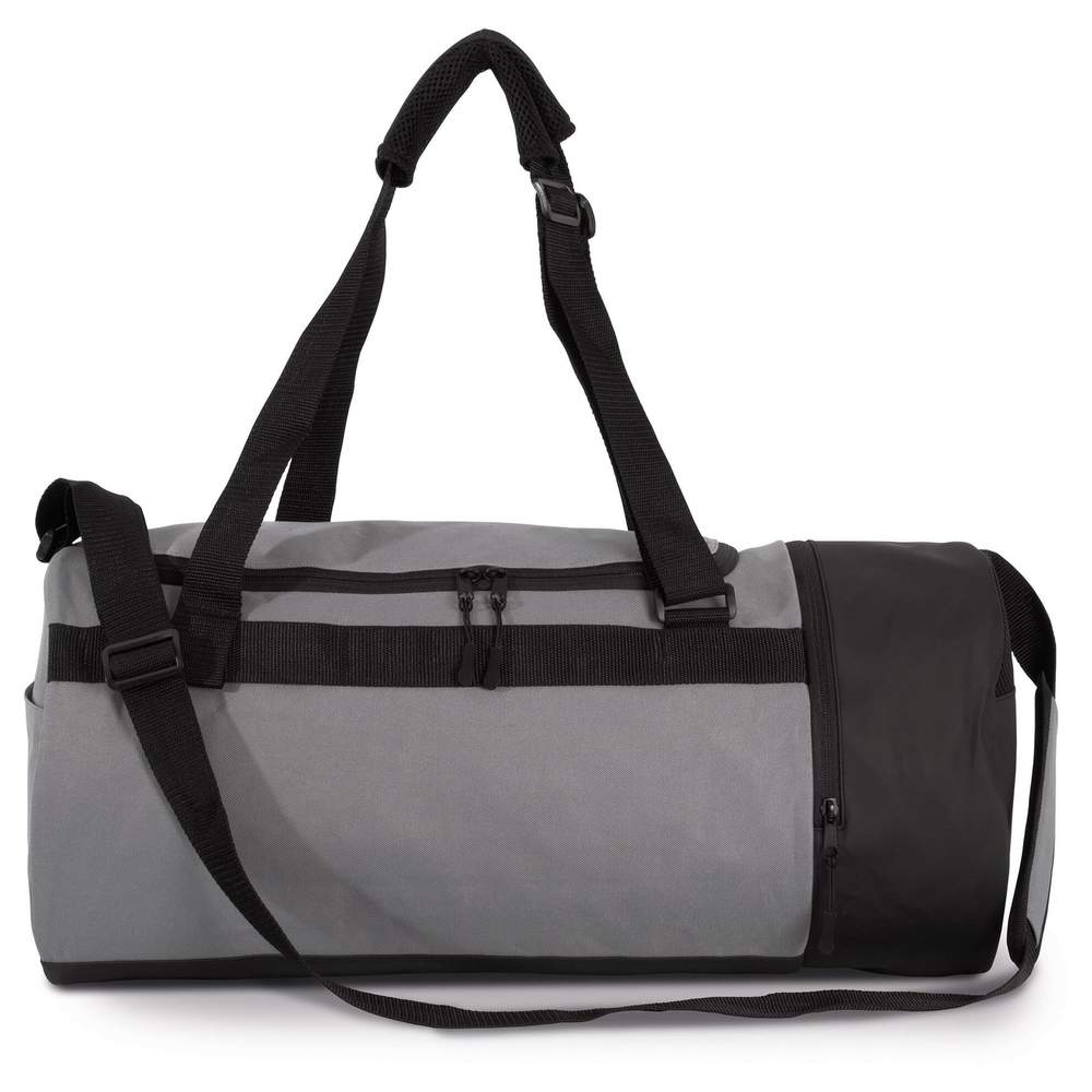Rørformet sportsvag, lavet af polyester 600D. Den tilbyder hovedopbevaringsplads og en afdeling til sko, adskilt fra resten af indholdet af en glidelås. Et fjernbart skulderrem muliggør transport på skulder, mens to robuste håndtag gør det muligt at bære det som en rygsæk for større fleksibilitet. Denne taske er designet til at lette transporten af sportsudstyr eller personlige ting under rejser.