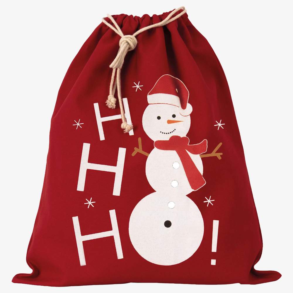 Sæk af bomuld med snemand motiv. Designet til daglig brug, tilbyder denne sæk en praktisk løsning til transport af forskellige artikler. Dens fremstilling i 100% bomuld giver den en vis robusthed og en behagelig følelse. Denne sæk er egnet til transport af personlige ejendele, bøger eller små genstande. Den skiller sig ud med sit sjove design og dens funktionelle egenskaber.