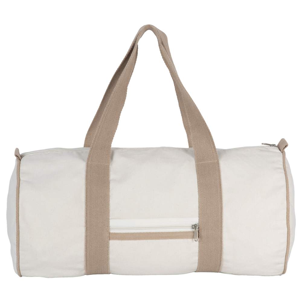 Tofarvet genbrugstask fremstillet af genbrugsbomuld og genbrugspolyester. Den er udstyret med 4,25 cm kontrastfarvede håndtag, syet rundt om hele kanterne for større holdbarhed. Tasken har en forreste lomme med zip-lukning. Dimensionerne er 50 x 25 x 25 cm, hvilket giver en kapacitet på 31 liter. Denne task er certificeret GRS (Global Recycled Standard) af Ecocert Greenlife.